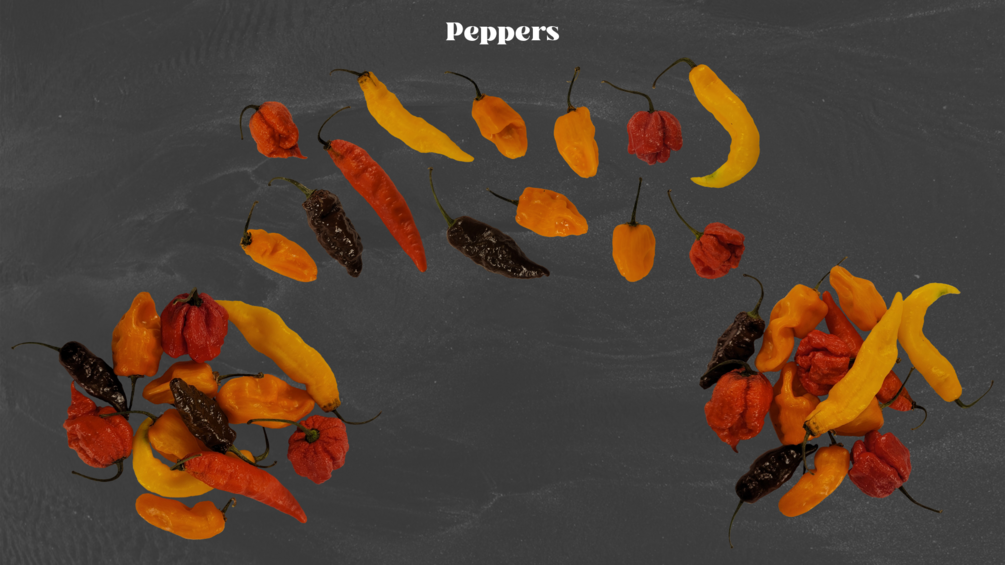 ◦ 13 assorted colors peppers and 2 piles of assorted peppers