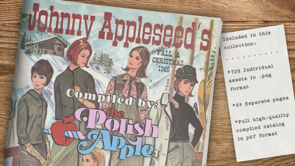 If you have any questions or problems, feel free to shoot me an email at: Apple@ThePolishApple.com729 vintage catalog assets in .png form, 64 individual pages, and a full digitalized PDF